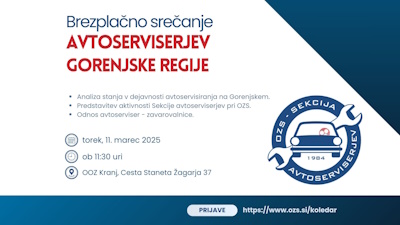 Sekcija avtoserviserjev pri OZS in OOZ Gorenjske regije vabimo na brezplačno srečanje, ki bo potekalo